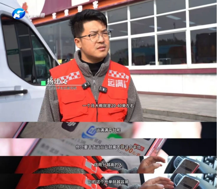 作为运满满平台上的资深司机,杨建文主要接长途单。“一个月大概就是20-40单左右,收入1万到2万。”他毫不吝啬分享自己的工作经验,“运满满平台呢,你只要干货运行业就离不开这个平台。”